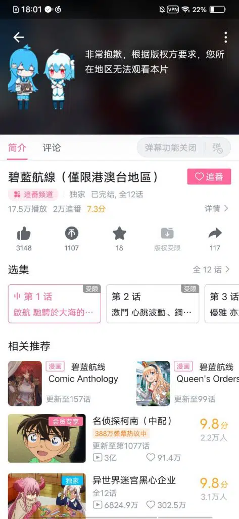 b站里上架了一批仅限港澳台可查看的番剧,关于这些番剧,即便你是海外版用户也是不能直接查看的,一样会出现【非常抱歉,根据版权方要求,您所在地区无法观看本片】强行劝退。