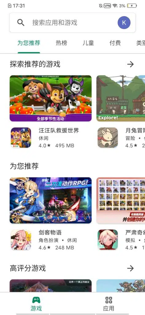 以上两种方式都是可行的,安装好谷歌商店之后就可以打开在其中下载任何你需要的 APP 了,页面如下:
