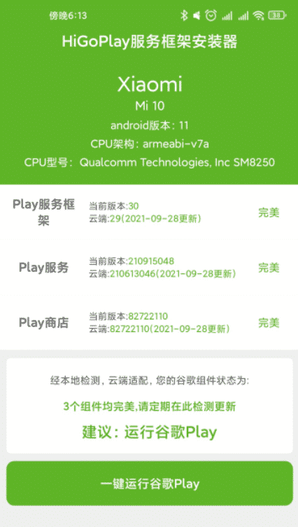 3、点击【一键运行谷歌 Play 】,安装Google Play商店完成。