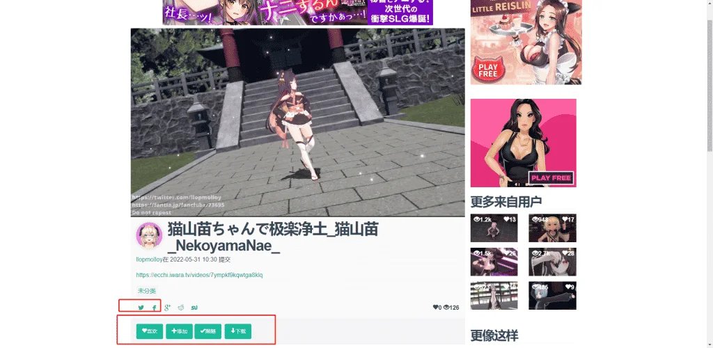 在i站内可以点击你感兴趣的 MMD 视频查看,视频下方可以选择分享到 Twitter 、Facebook ,或者是收藏、点赞、关注、下载。