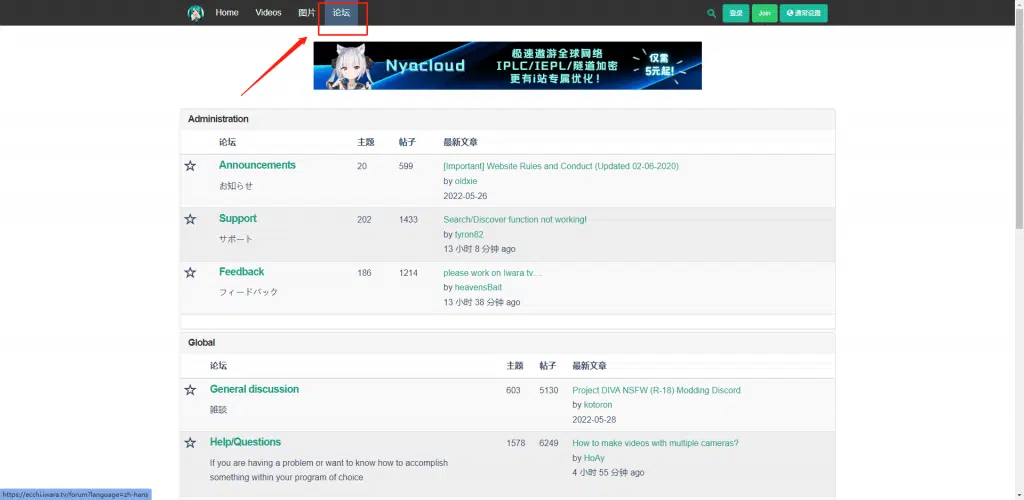 我们可以在i站里站的网页内,找到最上方的菜单栏,点击【论坛】(如果不知道怎么把i站里站设置成中文的,也可以往上翻翻文章,在前文内我们教过设置表站的中文了,步骤一样的。);